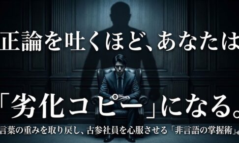 「今のやり方では、時代に取り残されます」 「もっと効率化して、新しいシステムを導入すべきです」 あなたが会議で放つその「正論」は、論理的には100%正しいはずです。 にもかかわらず、古参社員たちは面倒そうに目を逸らし、先…