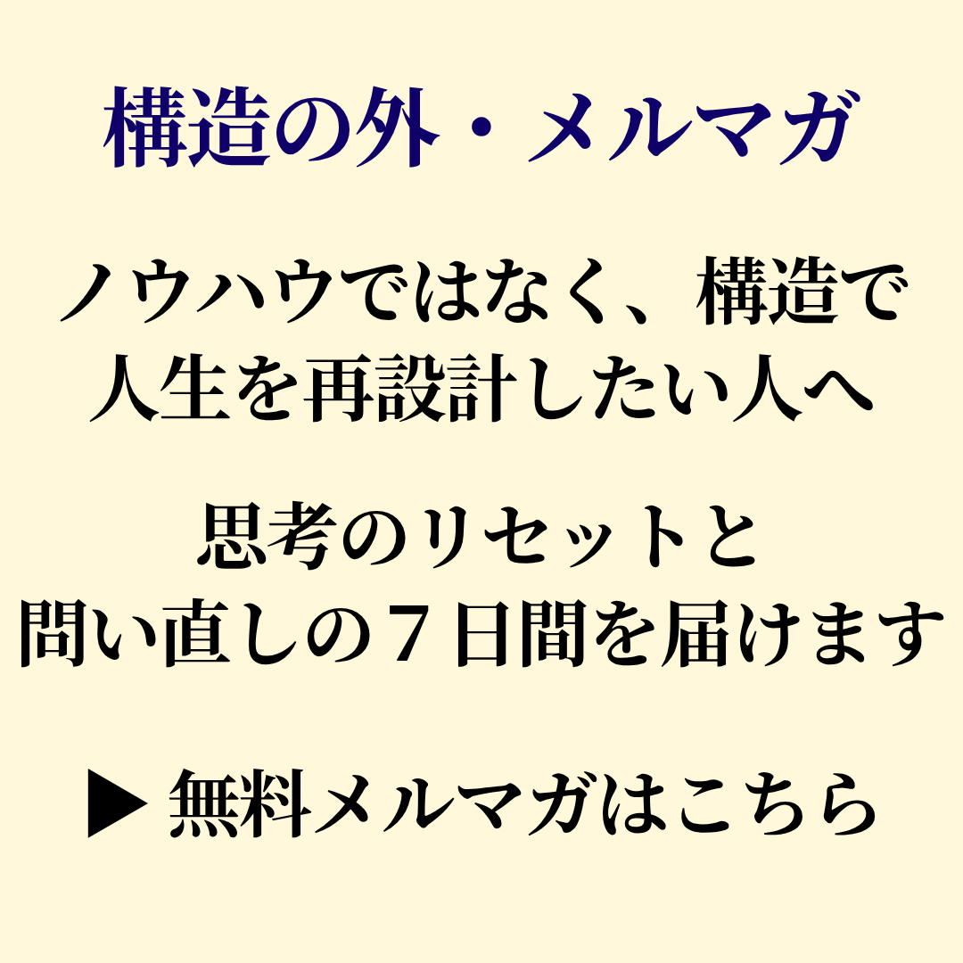 「テンプレで成果は出るが、問いを失う」という価値観のもと、単なるノウハウ提供ではなく、読者が「問いを持ち、自分の構造を見直し、自立して卒業していくこと」を支援の軸に据える。
